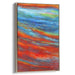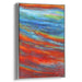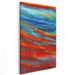 Introducing 'Vermilion Melody,' an electrifying abstract expressionist canvas art print that mesmerizes viewers with its vibrant colors and fluid motion. This captivating artwork showcases a dynamic representation of waves, gracefully flowing across the canvas in a seamless dance of fiery reds transitioning into cool blues and greens, reminiscent of a sunset over a tumultuous sea.