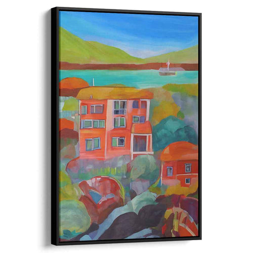 Embrace the cheerful allure of 'Vibrant Coastal Whimsy,' a contemporary masterpiece that echoes the bold use of color and simplified forms championed by artists like Henri Matisse and André Derain. Elevate your decor with this vibrant canvas art and immerse yourself in a world of artistic expression and coastal whimsy.