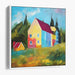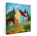 Introducing 'Vibrant Countryside Reverie,' a captivating canvas art print that transports viewers into a charming rural setting bursting with vibrant colors and lively energy. This artwork features a boldly colored house standing out against a backdrop of serene countryside, evoking a sense of joy and vitality.