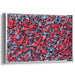 Introducing "Vibrant Origami Chaos," an electrifying canvas art print that mesmerizes with a striking interplay of red and blue origami shapes meticulously layered to form a visually dynamic composition. The canvas bursts with vibrant reds and cool blues, intricately woven into a seemingly chaotic yet harmonious pattern, dominating the artwork with an intense color palette.