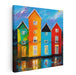 Introducing 'Vibrant Village Expression: Expressive Fauvist Colorful Houses,' a mesmerizing canvas art that brings to life a row of charming houses painted in bold, primary colors, exuding a sense of joy and whimsy. This dynamic artwork captures the essence of a playful village scene where tall, narrow houses stand proudly against a backdrop of a swirling, vibrant sky.
