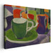 Introducing "Vivid Expressions: Bold Colors and Dynamic Composition," a captivating canvas art print that breathes life into everyday objects with a contemporary twist. This vivid piece showcases a green cup and saucer harmoniously paired with a purple and orange pitcher, all set against a backdrop of abstract shapes and colors that exude a sense of modernity and flair.