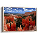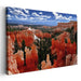 Introducing 'Vivid Horizon Tapestry,' a mesmerizing canvas art print that transports you to the awe-inspiring grandeur of a vast canyon landscape, where nature's magnificence unfolds in a harmonious blend of serenity and drama. This captivating artwork immerses viewers in a majestic scene dominated by towering sandstone hoodoos, their vibrant orange and red tones glowing brilliantly under the sun's embrace.