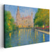 This piece is an ideal fit for living rooms, studies, or bedrooms, imparting a touch of elegance and serenity to any space it graces. Belonging to the Impressionist movement, known for its emphasis on light and color over intricate realism, the artwork centers on the grand building and its reflection against a backdrop of lush trees and a tranquil river.