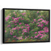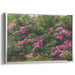 Introducing 'Whispering Blooms at Dusk,' a mesmerizing canvas art print that transports viewers into a lush garden bursting with the vibrant beauty of blooming rhododendrons. This exquisite artwork showcases a verdant landscape teeming with dense foliage and clusters of radiant pink flowers, meticulously depicted to create a tapestry of natural splendor.