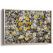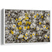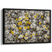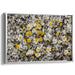 The soft white hues dominate the piece, harmoniously complemented by the vivid yellows of the flower centers and the subtle interplay of grays and browns in the background. Various shades of gray and hints of brown add depth and intricacy to the composition, creating a visual symphony that captivates the viewer's gaze.