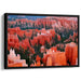 Introducing "Whispering Wind Songs: Nature's Sculpted Wonders," a mesmerizing landscape canvas art piece that transports viewers to the awe-inspiring beauty of Bryce Canyon, renowned for its iconic hoodoos and unique geological formations. This captivating artwork skillfully captures the vibrant red and orange hues of the towering rock structures that stand in stark contrast against the lush greenery of scattered pine trees.