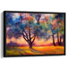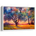 Step into the enchanting world of 'Whispers In Moonlit Woods,' a mesmerizing watercolor landscape that transports you to a serene forest bathed in the warm glow of a sunset. This captivating artwork captures the essence of autumn with its vibrant play of colors and ethereal beauty.
