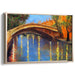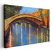 Introducing "Whispers Of Watercolors," an enchanting canvas art print that transports viewers to a serene canal scene, where a gracefully arched bridge spans tranquil waters, reflecting the golden light of the setting sun. This captivating artwork captures a harmonious balance with warm hues of ochre and sienna dominating the bridge and surrounding architecture.