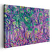 Introducing 'Whispers of Wild Colors,' a mesmerizing canvas art print that transports viewers into a vibrant and fantastical woodland realm, brimming with whimsy and energy. This captivating artwork showcases a rich forest landscape depicted in a bold and expressive style, dominated by a striking primary color of purple that weaves through the twisted tree trunks and branches, creating an almost surreal and dreamlike setting.