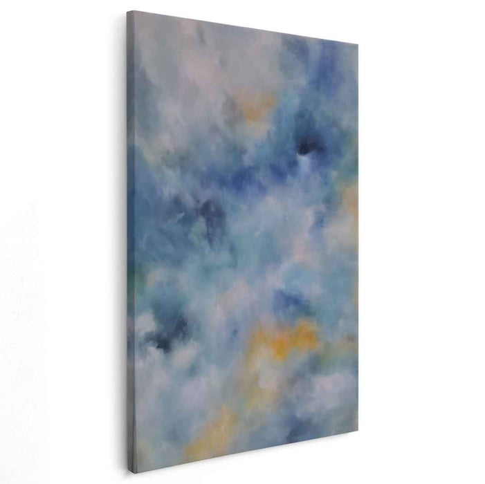 'Whispers of Winter Breeze' features a harmonious blend of soft blues, gentle whites, and subtle hints of yellow and black, creating a dreamlike ambiance that soothes the soul. The expertly executed color blending techniques evoke a celestial sky or a distant nebula, immersing the audience in a realm of infinite space and peaceful solitude.
