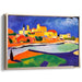 Embracing a modernist style reminiscent of Fauvism, this artwork boldly showcases pure, unblended colors and expressive brushstrokes that dance across the canvas. The buildings, simplified into geometric shapes, add a touch of abstraction while retaining the charming essence of a quaint village, inviting viewers to explore its vibrant world.