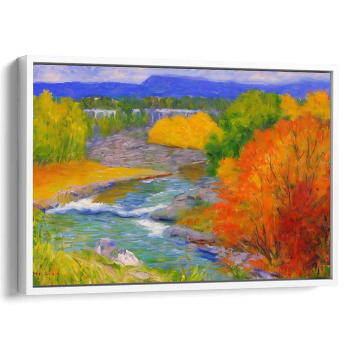 Add a touch of nature's splendor to your living environment with 'Wisdom's Flow.' This vibrant river valley canvas art brings the beauty of autumn indoors, offering a daily reminder of the wonders of the natural world. Whether hung in a living room, dining room, or office, this piece is sure to elevate your space with its harmonious and captivating presence.