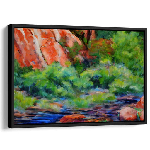 Whispering Pine Symphony: Vibrant Forest Stream Canvas Art