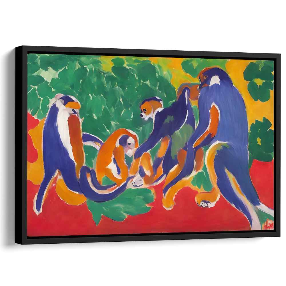 Primate Paradise: Fauvist Monkeys in Vibrant Landscape Canvas Art Print