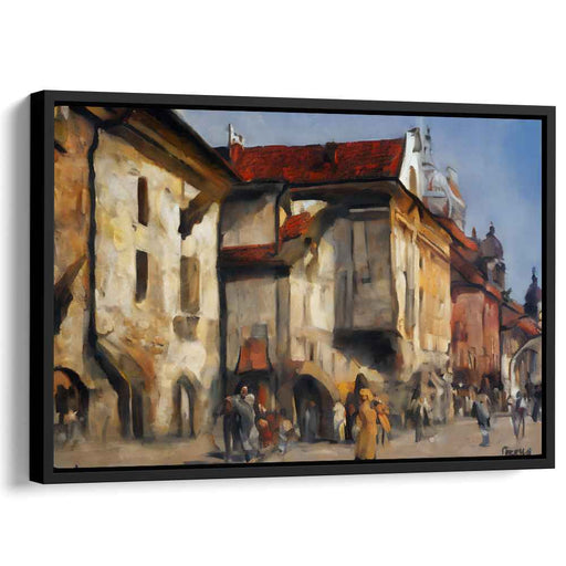 Golden Hour at the European Square: Realist Urban Landscape Canvas Art