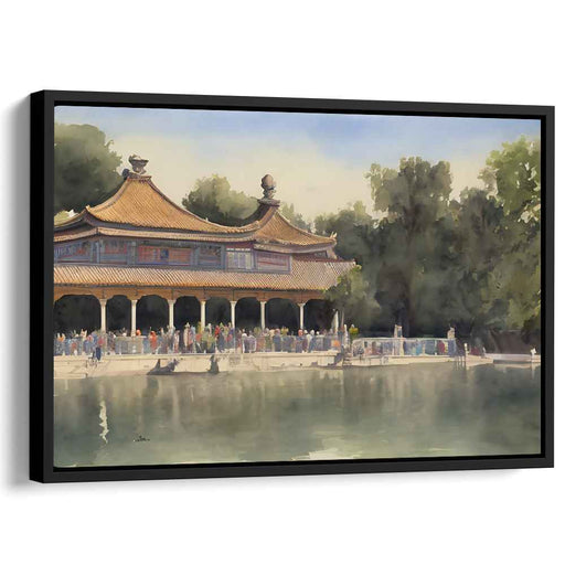 Ink Lotus Pavilion: Traditional Chinese Pavilion Watercolor Art Print