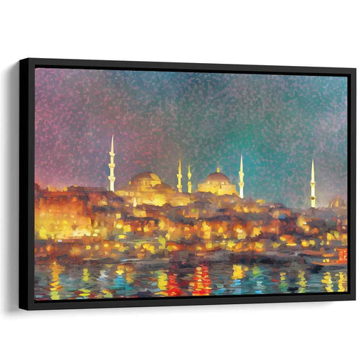 Enchanted Istanbul: Pointillist Nightscape Canvas Art Print