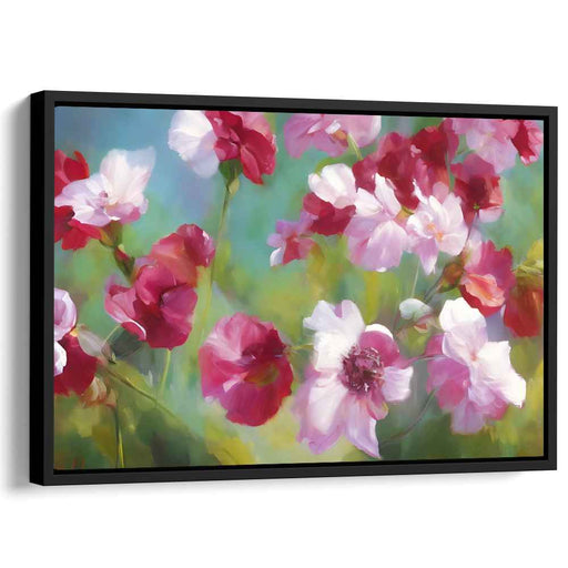 Vivid Crimson Blossoms Dance: Impressionist Red Flowers Canvas Art Print