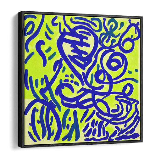Chromatic Rushing Waters: Abstract Expressionist Lime Green and Blue Canvas Art Print