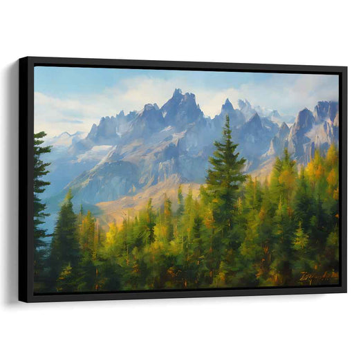 Enchanted Summit Serenity: Lush Forest and Towering Peaks Landscape Canvas Art
