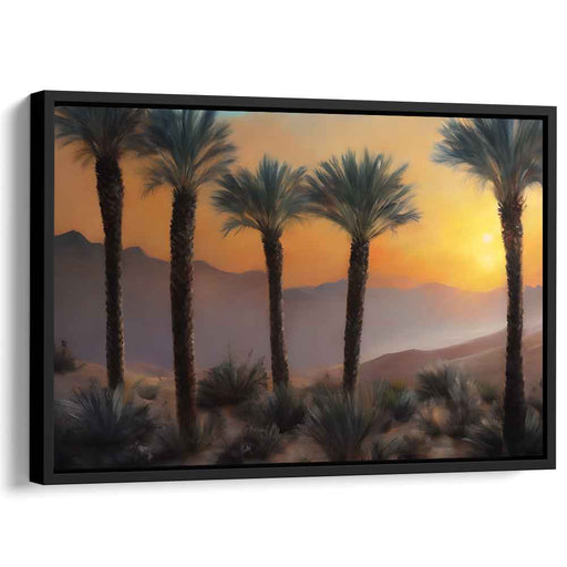 Desert Sunset Serenity: Majestic Palm Trees at Dusk Canvas Art Print