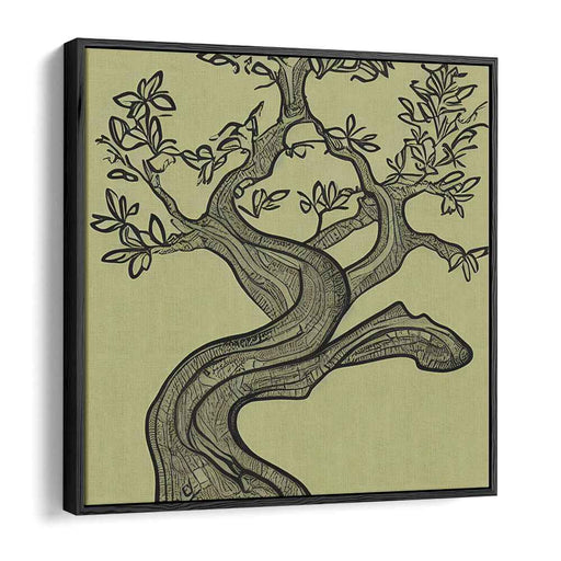 Zen Forest Silhouette: Modern Line Art Olive Green Tree Canvas Print