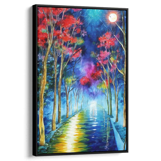 Luminous Stroll: A Vibrant Watercolor Boulevard Canvas Art