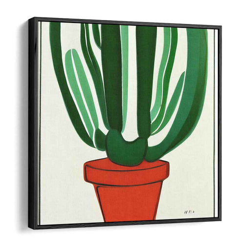 Modern Minimalist Cactus: Bold Green and Red Abstract Canvas Art Print