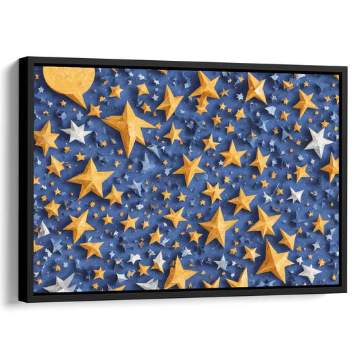 Starry Night Reflections: Golden and Silver Stars on Deep Blue Canvas Art Print