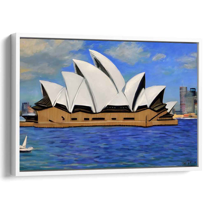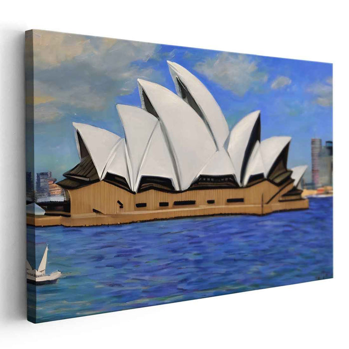 Introducing 'Architectural Marvel on Canvas: Architectural Marvel on Canvas,' a mesmerizing canvas art that encapsulates the grandeur of the Sydney Opera House against the vibrant backdrop of Sydney Harbour. This captivating artwork transports viewers to the heart of Sydney, where the architectural masterpiece stands tall against a vivid blue sky and the glistening waters of the harbor.