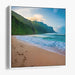Introducing 'Authentic Earthy Impressions,' a mesmerizing realistic landscape canvas art print that immerses viewers in a serene coastal haven, where the beauty of the ocean harmonizes with the rugged allure of towering cliffs. This captivating artwork captures a scene dominated by lush, verdant green cliffs rising majestically from sandy shores, juxtaposed against the azure blue waters of the ocean.