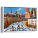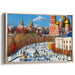 Introducing the enchanting canvas art, 'Autumn Stroll in Historic Cityscape: Vibrant Architectural Marvel,' a mesmerizing depiction of a bustling cityscape immersed in the hues of autumn, likely situated in a historic European city. The focal point of this scene is a magnificent architectural wonder adorned with striking onion domes, reminiscent of Russian Orthodox cathedrals, painted in rich reds and golds, standing boldly against the sky.