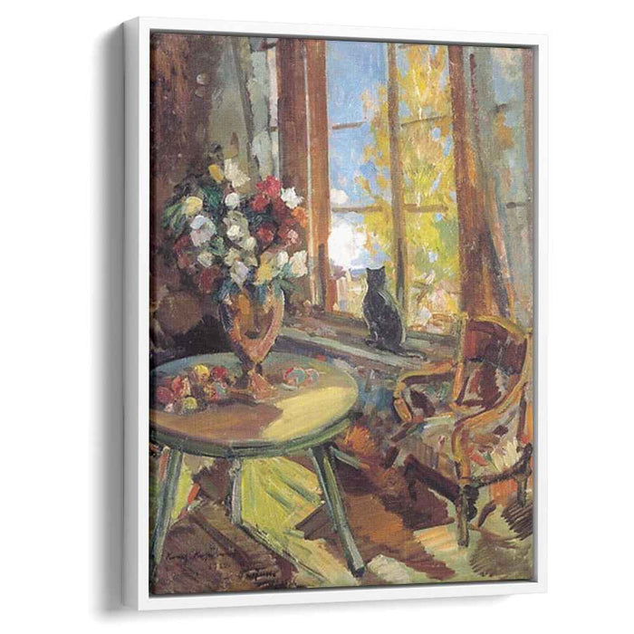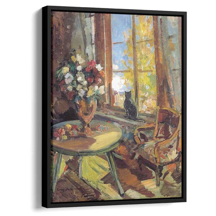 Unveil the serene beauty of Konstantin Korovin's "Black Cat on a Windowsill," a captivating canvas that invites us into the heart of Russian domesticity. This masterpiece from the artist's Impressionist period perfectly captures the essence of a quiet afternoon, now meticulously recreated on high-quality canvas for your own enjoyment.