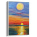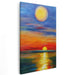 Introducing "Blurred Aquatic Border," a mesmerizing canvas art piece that transports viewers to a tranquil ocean horizon at the brink of dusk, capturing the ethereal beauty of a sunset in an impressionistic style. The artwork showcases a symphony of colors in the sky, from deep blues and purples above to warm oranges, reds, and yellows near the horizon, where the radiant sun dips below the edge, casting a golden reflection on the rippling waters.