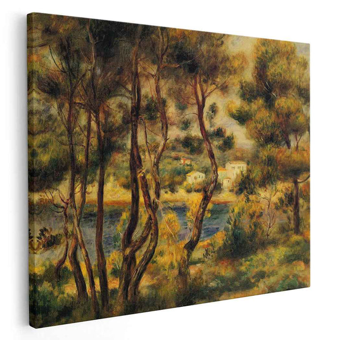 Immerse yourself in the sun-drenched beauty of Pierre-Auguste Renoir's "Cape Saint Jean (1910)," now available as a breathtaking high-quality canvas print. This masterpiece captures the essence of the painter's late Impressionist style, inviting you to bask in the warm glow of the Mediterranean coastline.