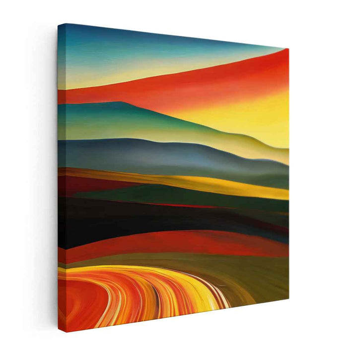 Introducing "Chromatic Dreamscapes," an enthralling abstract landscape canvas art print that mesmerizes viewers with its vibrant and dynamic world. This captivating artwork features sweeping bands of color that mimic the undulating forms of hills and valleys, creating a sense of movement and depth.