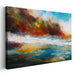 Step into the mesmerizing realm of 'Chromatic Tides Abstraction: Abstract Seascape in Vivid Colors,' an enchanting canvas art piece that transports you to a world where the boundaries between sky and water dissolve into a symphony of vibrant hues. Dominated by a captivating interplay of fiery oranges and deep blues, this artwork exudes a sense of boundless expansion and profound depth, drawing viewers into its mesmerizing palette.