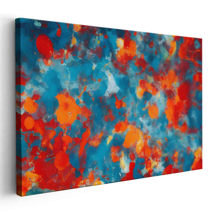 Color Drama Fusion: Abstract Expressionist Blue and Orange Canvas Art Print
