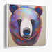 Introducing "Colorful Contemplation," a mesmerizing canvas art print that brings to life a whimsically colorful portrait of a bear, exuding vibrancy and emotion in every brushstroke. At the heart of the composition stands a bear with a soul-stirring gaze, its eyes forging a poignant connection with the viewer, evoking a sense of gentle yet profound contemplation.
