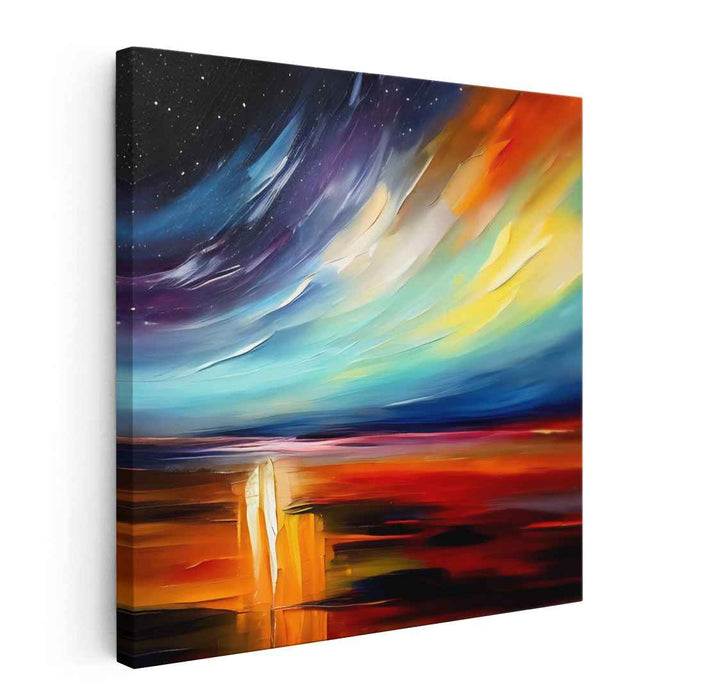 This piece would make a stunning addition to any living room or bedroom, where its vibrant colors and dynamic composition can be fully appreciated. Its captivating blend of celestial beauty and earthly warmth creates a focal point that sparks conversation and contemplation, making it a perfect choice for spaces meant for relaxation and reflection.