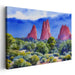 Introducing the breathtaking canvas art print titled 'Divine Earthscape Tapestry: Garden of the Gods.' This mesmerizing artwork transports viewers to the iconic landscape of what seems to be the Garden of the Gods in Colorado Springs, capturing the majestic red rock formations against a vibrant blue sky.