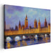 Introducing "Dreams Whispering Beneath Night Shadows: Majestic View of the Palace of Westminster," a breathtaking canvas art that transports viewers to the iconic Palace of Westminster in London, showcasing its grand Gothic architecture against a twilight sky. This mesmerizing piece captures the historic buildings in intricate detail, including the famous Big Ben clock tower, all illuminated by a warm, golden glow that reflects off the serene waters of the River Thames below.