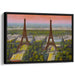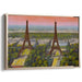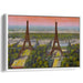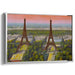 This canvas art print is a perfect addition to a living room or bedroom, where its whimsical yet serene mood can be fully appreciated. The intricate details of the Paris cityscape beneath the Eiffel Towers prompt contemplation and conversation, making it a captivating focal point in any space.
