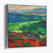 Introducing 'Emerald Valleys: A Vivid Journey Through Abstract Terrain,' a mesmerizing canvas art that transports viewers into a vibrant and dynamic landscape of lush, rolling hills and vivid, undulating terrains. This captivating artwork immerses you in a world where fiery reds and deep oranges at the forefront evoke the energy of wildflowers or a fiery sunset, seamlessly blending into rich greens and cool blues, creating a sense of vastness that extends towards distant mountains under a softly lit sky.
