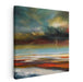 Introducing "Epic Vista," a mesmerizing landscape canvas art print that immerses viewers in a captivating yet tumultuous natural spectacle, where the raw power of nature converges with its serene beauty. This striking artwork portrays a sky filled with swirling clouds in a mesmerizing palette of teal, turquoise, and gold, hinting at the imminent arrival of a potent storm. Lightning bolts electrify the sky, infusing the composition with dynamism and intensity.