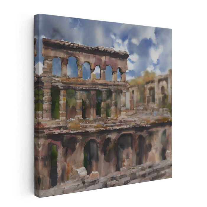 Introducing "Eternal Echoes of Colorful Decay: Timeless Ruins Under a Vibrant Sky," a mesmerizing landscape canvas art that immerses viewers in the splendor of ancient architectural remnants, capturing the essence of bygone eras with a touch of modernity. This captivating artwork delves into the grandeur and decay of historical ruins, offering a poignant reflection on the passage of time and the enduring beauty of antiquity.
