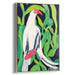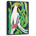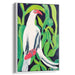 Introducing 'Feathered Purity: Vibrant White Bird,' a mesmerizing canvas art print that transports viewers into a lush tropical paradise, where a majestic white bird takes center stage amidst a backdrop of vibrant green foliage. This captivating artwork captures the essence of exotic wildlife and tranquility, blending bold colors and simplistic detailing into a harmonious composition that exudes elegance and allure.