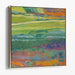 Introducing "Flame Dance Over Verdant Hills," an abstract landscape canvas art that mesmerizes viewers with its vibrant colors and dynamic forms, infusing any space with sophistication and energy. This captivating artwork showcases a series of horizontal bands, each a unique exploration of color and texture, resembling a lush, undulating landscape seen from a bird's eye view.