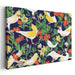 Introducing 'Flourishing Aviary: Whimsical Birds and Blossoms,' a vibrant and enchanting canvas art print that brings a burst of color and life into any space. This captivating artwork showcases a delightful scene of elegant birds gracefully perched amidst a lush floral landscape, set against a deep, rich blue backdrop.